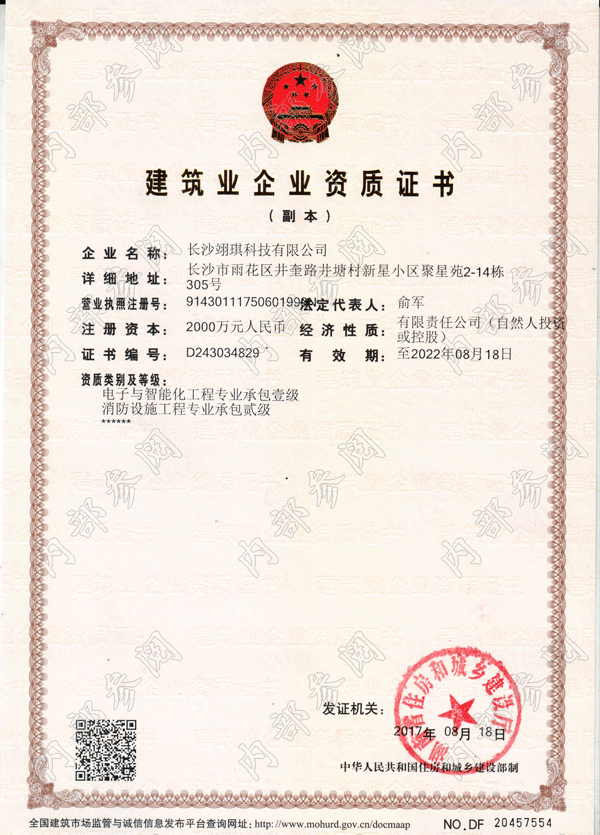 建筑業(yè)資質(zhì)副本